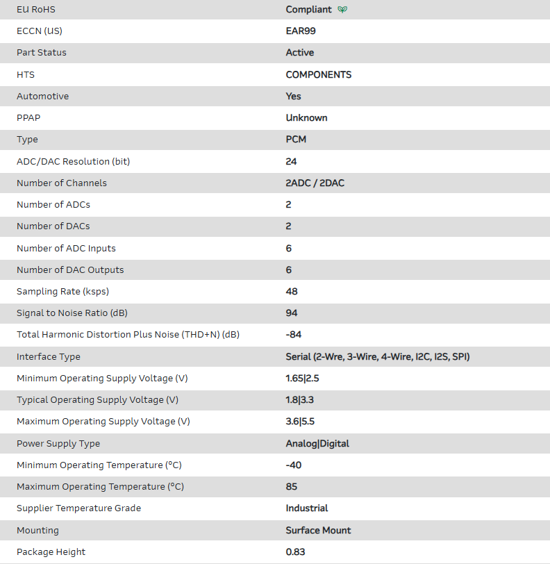 PCM Audio Codec 2ADC / 2DAC Ch Automotive AEC-Q100 32-Pin QFN EP