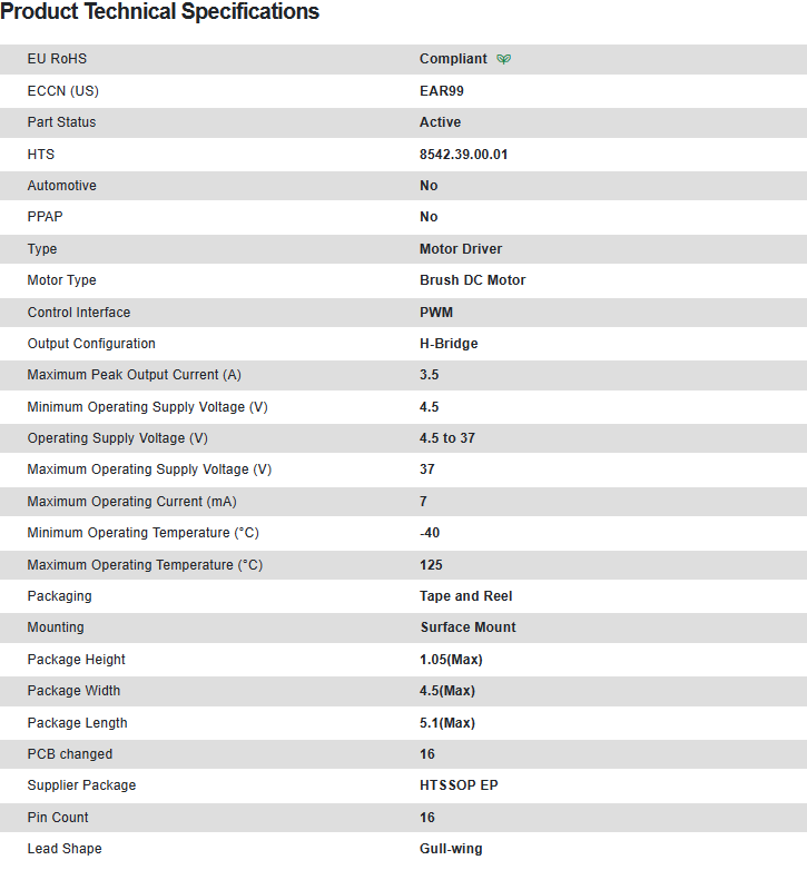 电机驱动器及控制器 H-Bridge Motor Driver 16-Pin HTSSOP EP T/R