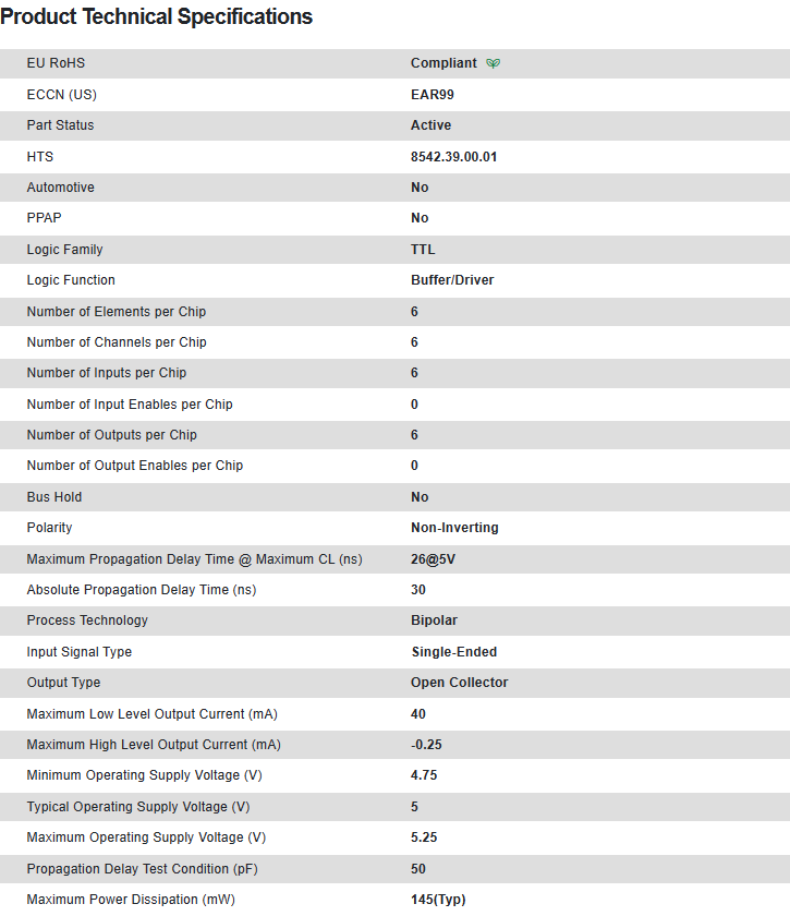接口(驱动器/接收器/收发器)Buffer/Driver 6-CH Non-Inverting Open Collector Bipolar 14-Pin SOIC T/R
