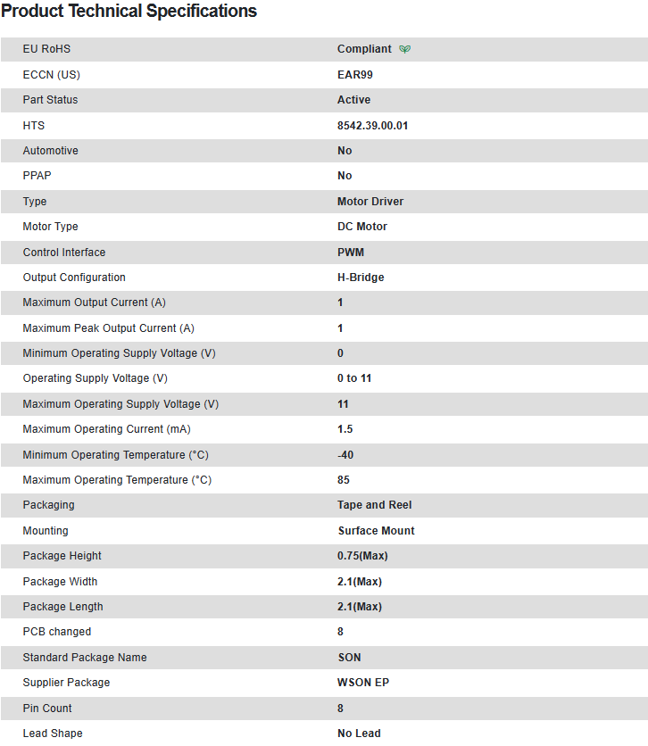 | Part Number | DRV8837CDSGR |