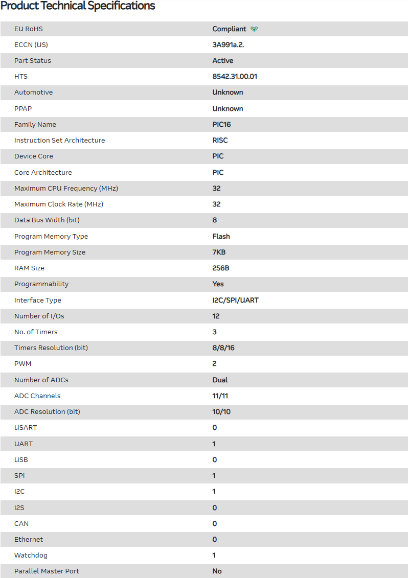 单片机 MCU 8-bit PIC RISC 7KB Flash 2.5V/3.3V Automotive 14-Pin SOIC N Tube