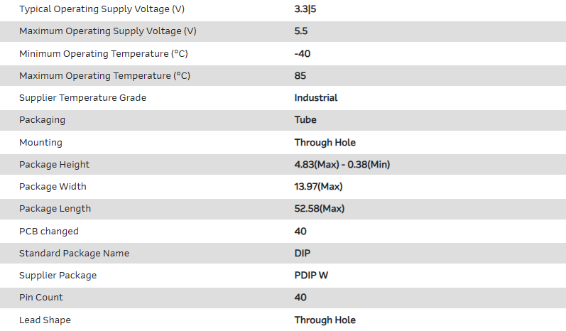 单片机 MCU 8-bit AVR RISC 8KB Flash 3.3V/5V 40-Pin PDIP W Tube