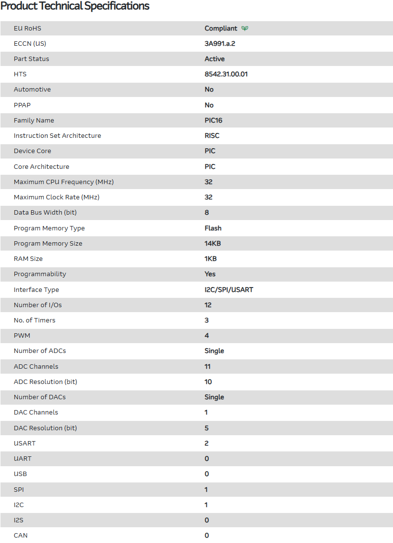 单片机 MCU 8-bit PIC RISC 14KB Flash 2.5V/3.3V/5V 14-Pin SOIC N T/R
