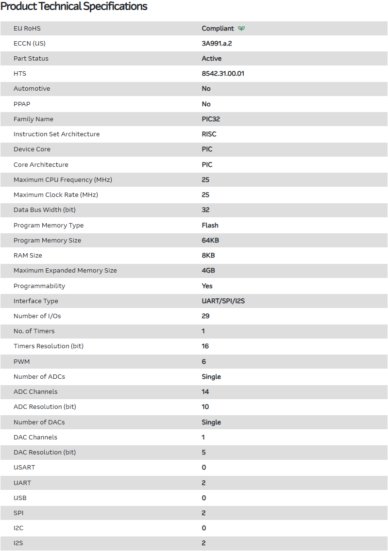 单片机 MCU 32-bit PIC RISC 64KB Flash 2.5V/3.3V 40-Pin UQFN EP Tube