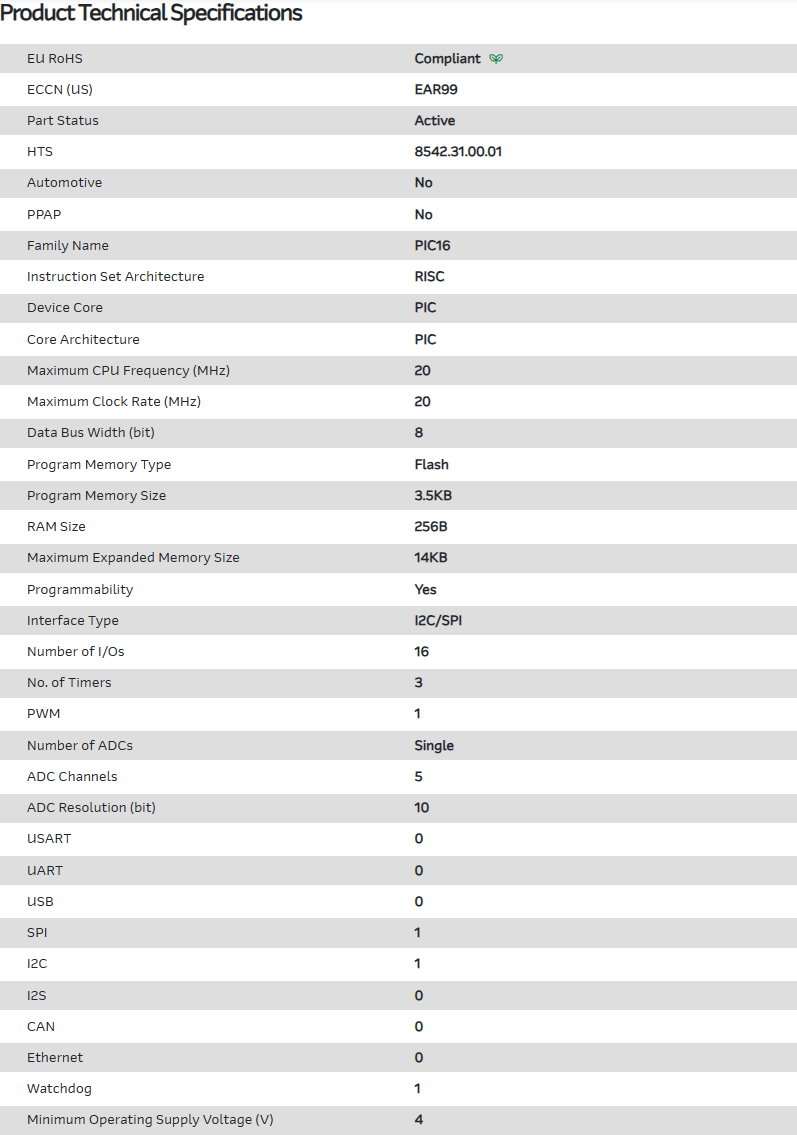 单片机 MCU 8-bit PIC RISC 3.5KB Flash 5V 18-Pin SOIC W T/R