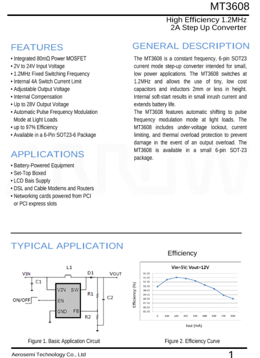 SOT23-6 High Efficiency 1.2 MHz 2A Boost Converter