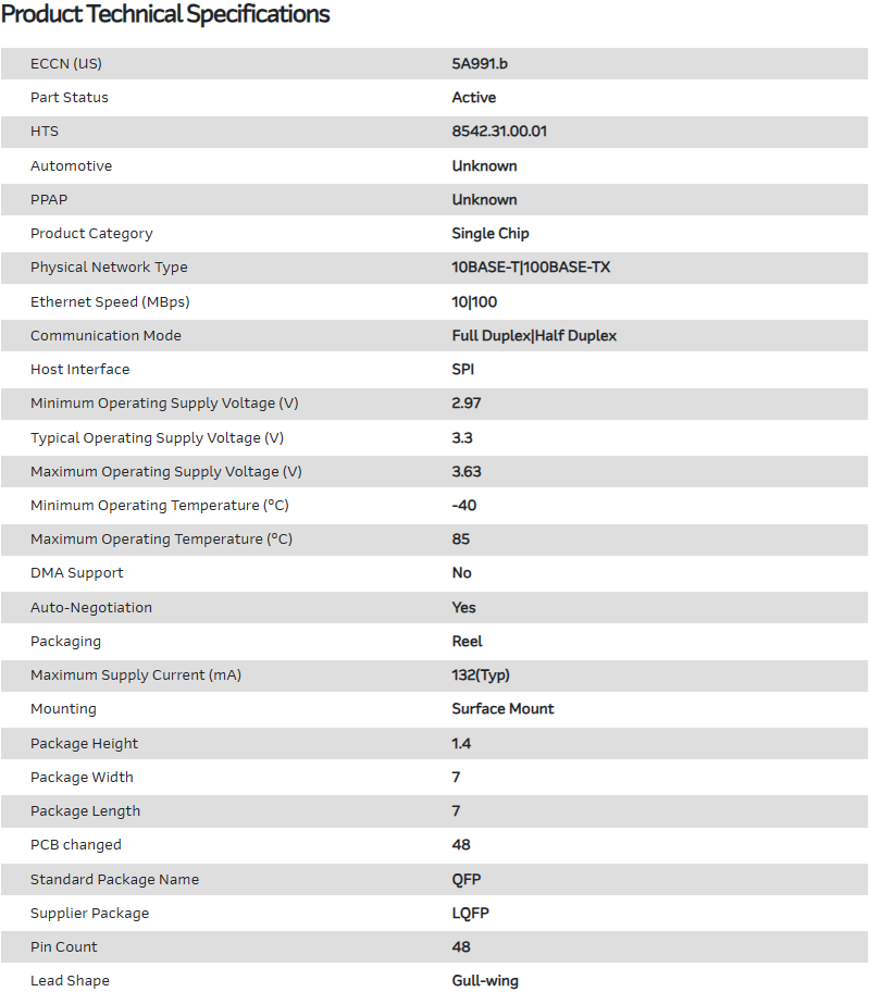 Ethernet CTLR Single Chip 10Mbps/100Mbps 3.3V 48-Pin LQFP Reel
