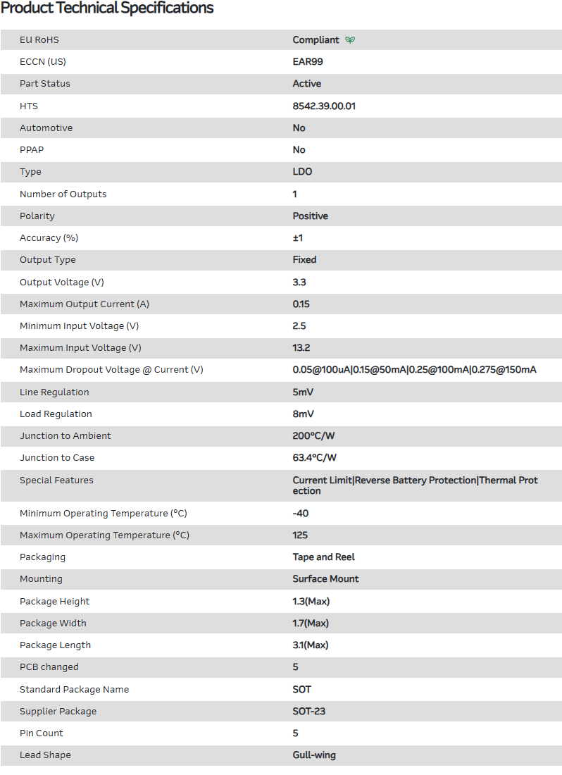 LDO Regulator Pos 3.3V 0.15A 5-Pin SOT-23 T/R