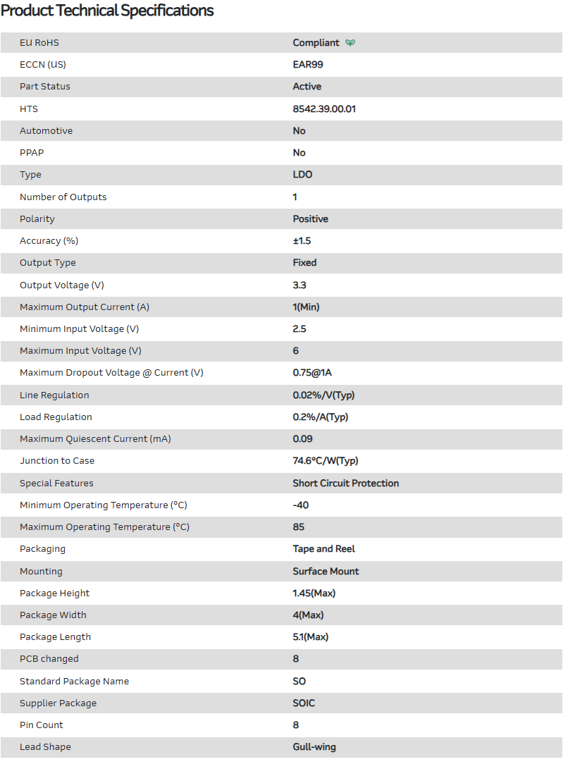 LDO Regulator Pos 3.3V 1A 8-Pin SOIC T/R