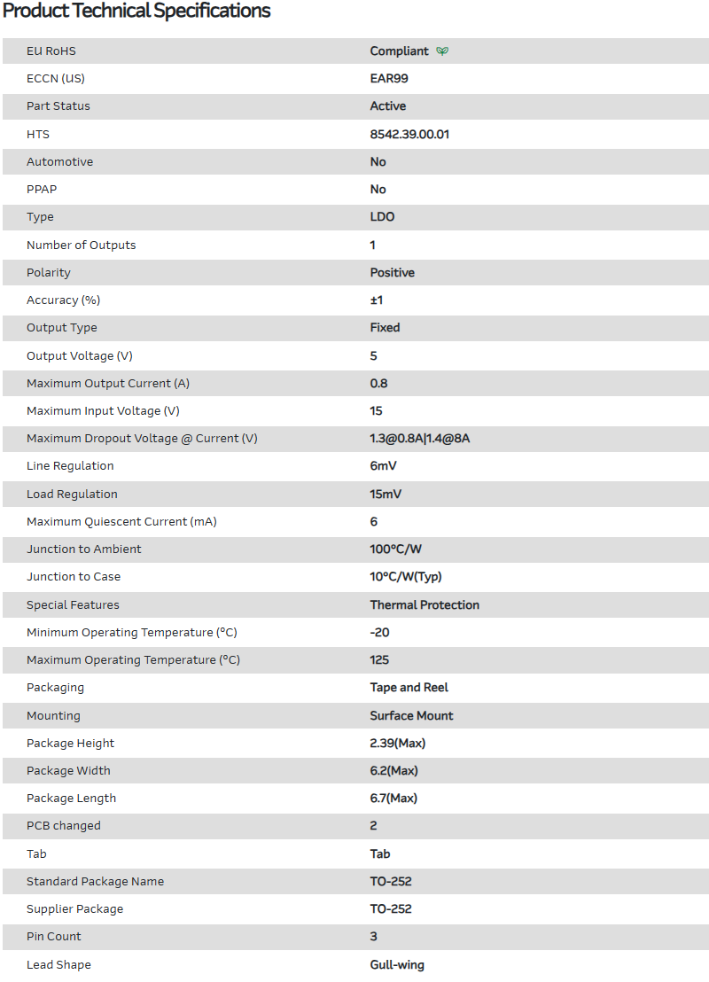 LDO Regulator Pos 5V 0.8A 3-Pin(2+Tab) TO-252 T/R