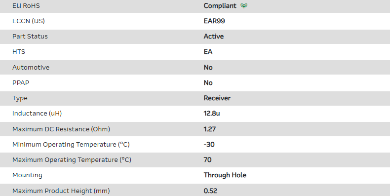 Wireless Charging Coil Receiver 12.8uH 100KHz 1.27OhmDCR Through Hole