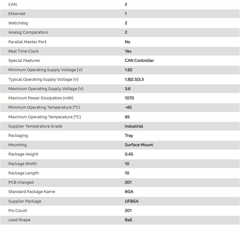 32位MCU微控制器 MCU 32-bit ARM Cortex M7 RISC 2MB Flash 1.8V/2.5V/3.3V 201-Pin UFBGA Tray
