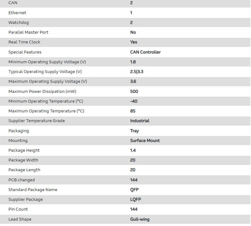 32位MCU微控制器 MCU 32-bit ARM Cortex M4 RISC 512KB Flash 2.5V/3.3V 144-Pin LQFP Tray