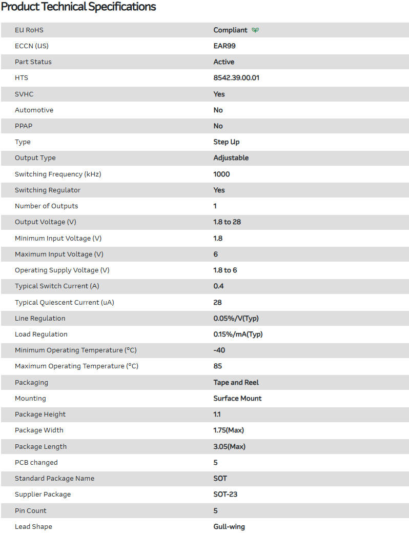 DC-DC电源芯片 Conv DC-DC 1.8V to 6V Step Up Single-Out 1.8V to 28V 5-Pin SOT-23 T/R