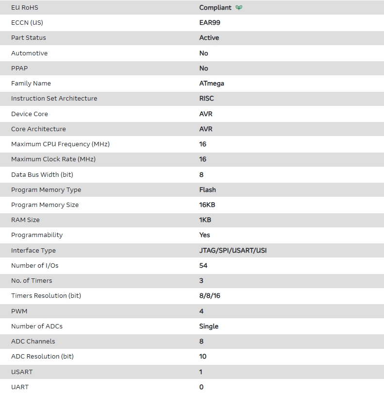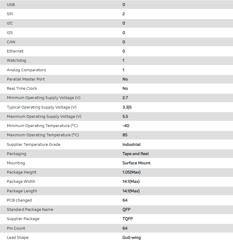MCU 8-bit AVR RISC 16KB Flash 3.3V/5V 64-Pin TQFP T/R