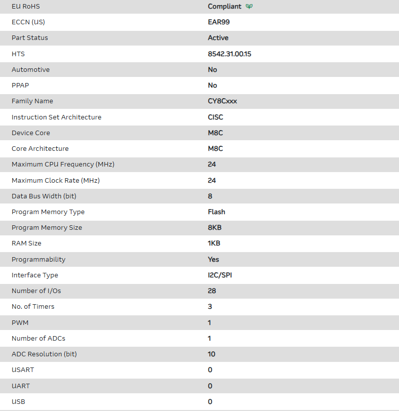 MCU 8-bit M8C CISC 8KB Flash 1.8V/2.5V/3.3V/5V 32-Pin QFN EP Tray