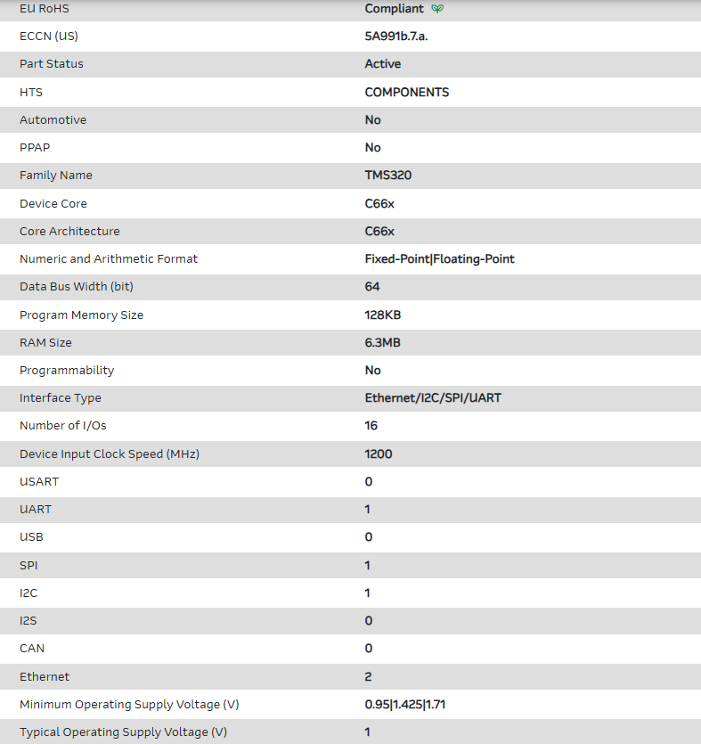 | Part Number | TMS320C6670ACYP2 |