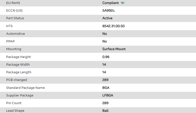 MPU RISC 32bit 500MHz 289-Pin LFBGA Tray