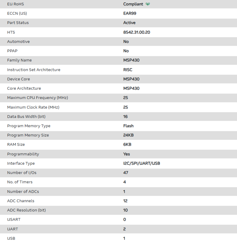MCU 16-bit MSP430 RISC 24KB Flash 2.5V/3.3V 64-Pin VQFN EP T/R
