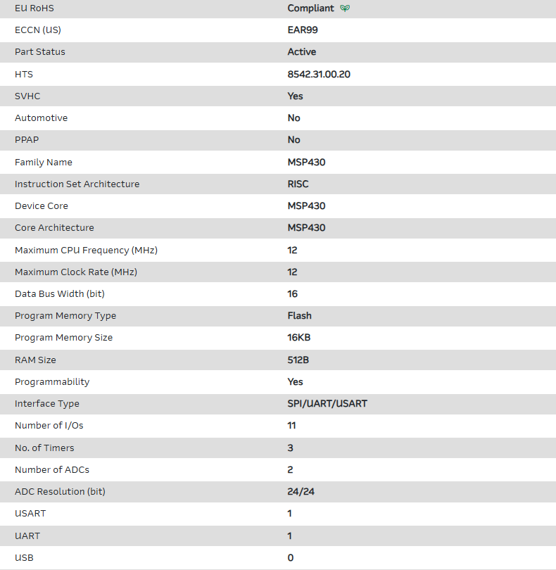 MCU 16-bit MSP430 RISC 16KB Flash 2.5V/3.3V 24-Pin TSSOP T/R