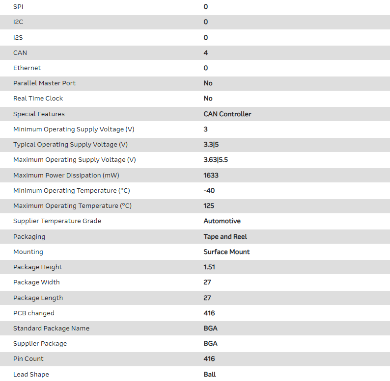 MCU 32-bit TriCore RISC 4MB Flash 3.3V/5V 416-Pin BGA T/R Automotive AEC-Q100