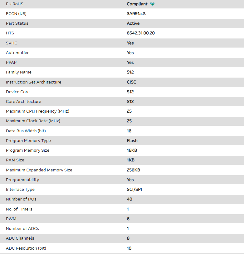 MCU 16-bit S12 CISC 16KB Flash 3.3V/5V Automotive AEC-Q100 48-Pin LQFP T/R