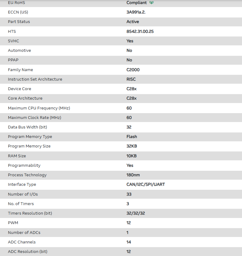 MCU 32-bit C28x RISC 32KB Flash 1.8V/3.3V 64-Pin TQFP Tray