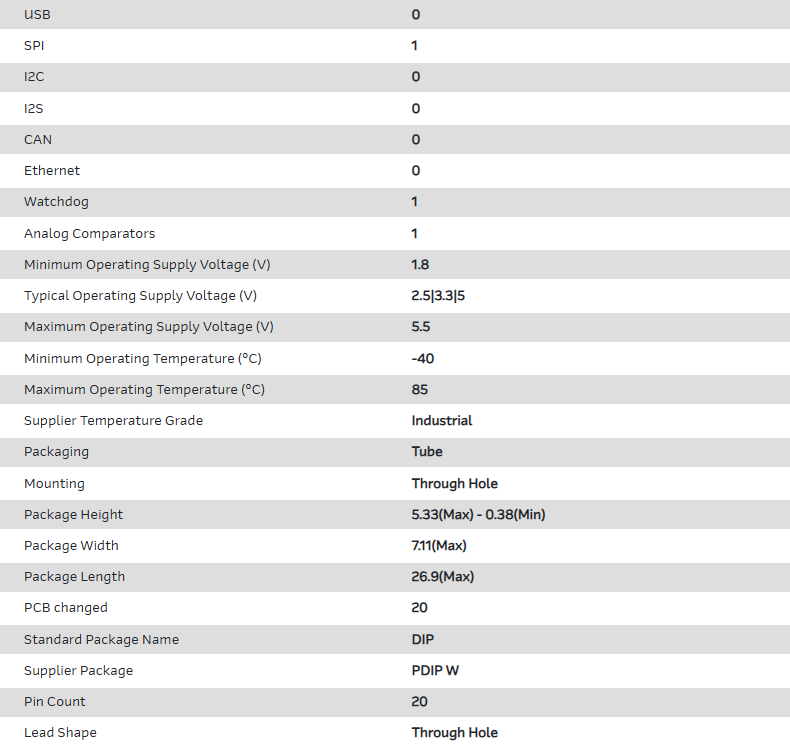 MCU 8-bit AVR RISC 4KB Flash 2.5V/3.3V/5V 20-Pin PDIP W Tube