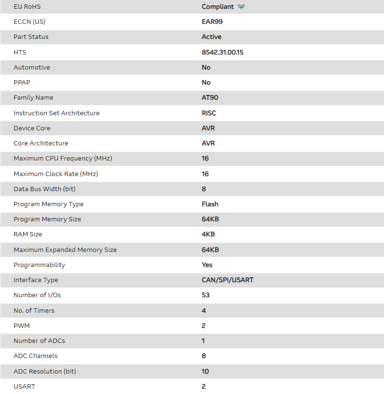 MCU 8-bit AVR RISC 64KB Flash 3.3V/5V 64-Pin VQFN T/R