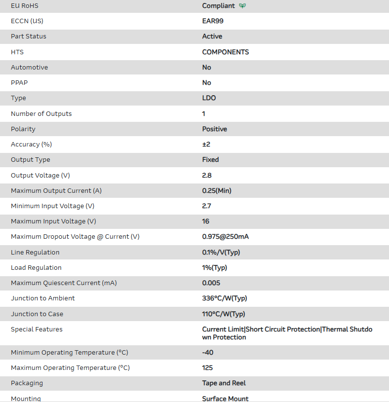 LDO Regulator Pos 2.8V 0.25A 3-Pin SOT-23A T/R