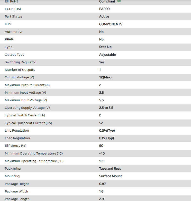 Conv DC-DC 2.5V to 5.5V Step Up Single-Out 32V 2A 5-Pin TSOT-23 T/R