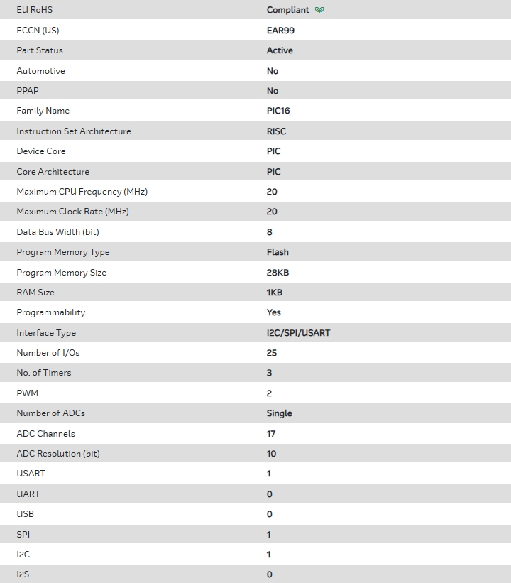 MCU 8-bit PIC RISC 28KB Flash 2.5V/3.3V 28-Pin SOIC W Tube