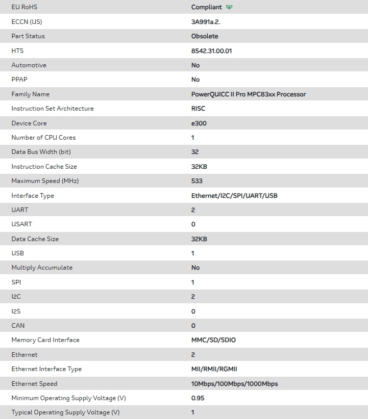MPU PowerQUICC II Pro MPC83xx Processor RISC 32bit 0.09um 533MHz 1.8V/2.5V/3.3V 689-Pin TEBGA II Tray