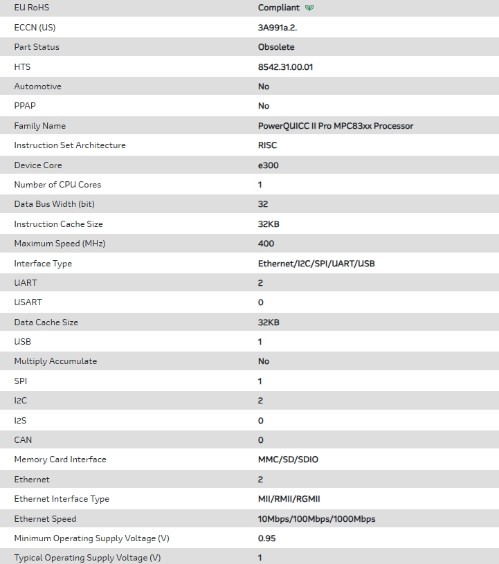 MPU PowerQUICC II Pro MPC83xx Processor RISC 32bit 0.09um 400MHz 1.8V/2.5V/3.3V 689-Pin TEBGA II Tray