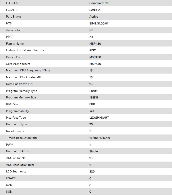 MCU 16-bit MSP430 RISC 128KB FRAM 2.5V/3.3V 100-Pin LQFP Tray