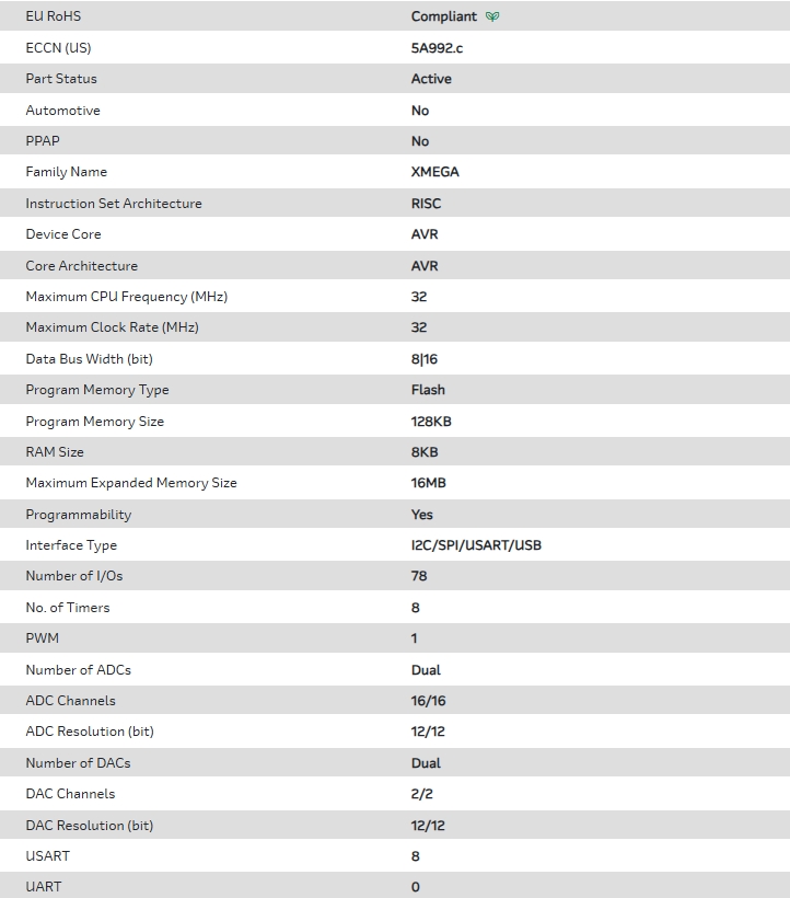 MCU 8-bit/16-bit AVR RISC 128KB Flash 1.8V/2.5V/3.3V 100-Pin VFBGA T/R
