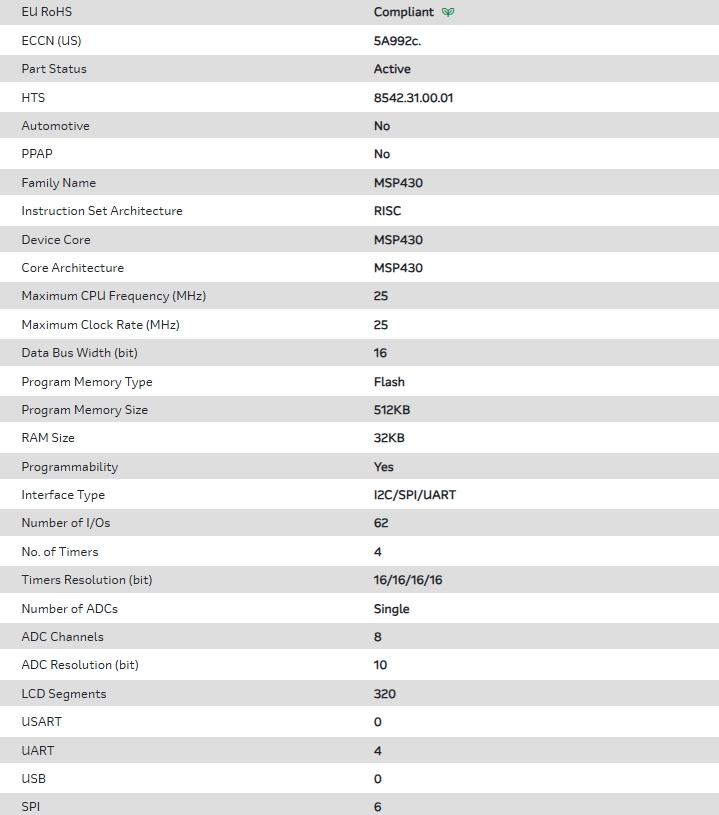 MCU 16-bit MSP430 RISC 512KB Flash 2.5V/3.3V 100-Pin LQFP T/R