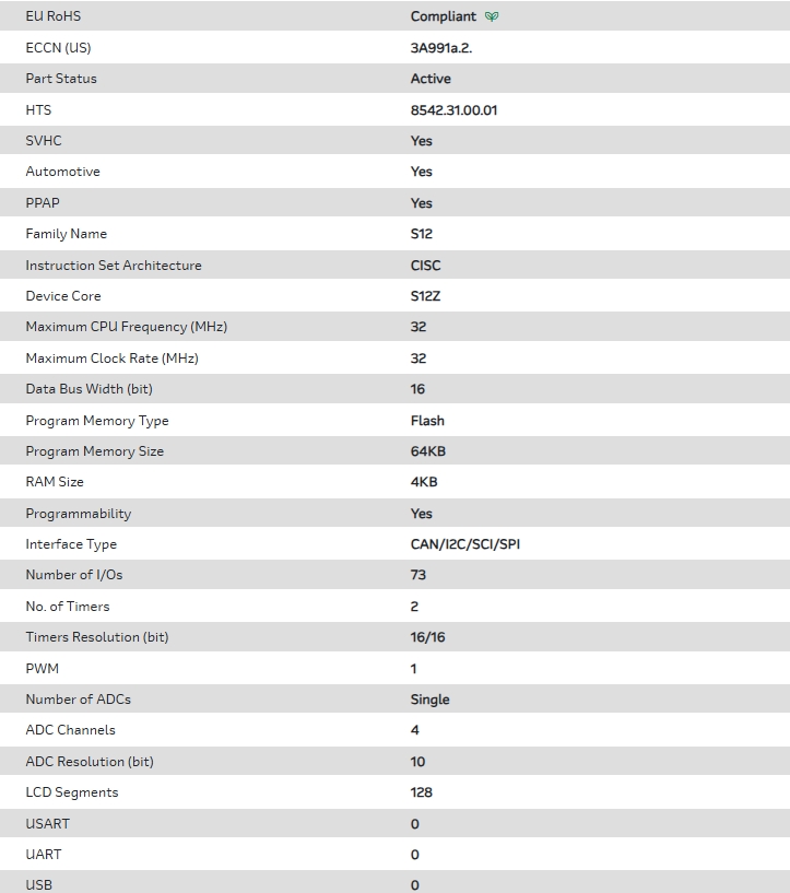 MCU 16-bit S12Z CISC 64KB Flash Automotive AEC-Q100 100-Pin LQFP Tray