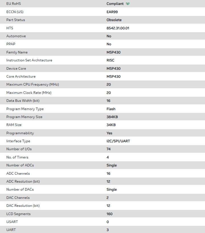 MCU 16-bit MSP430 RISC 384KB Flash 2.5V/3.3V 113-Pin BGA MICROSTAR JUNIOR T/R
