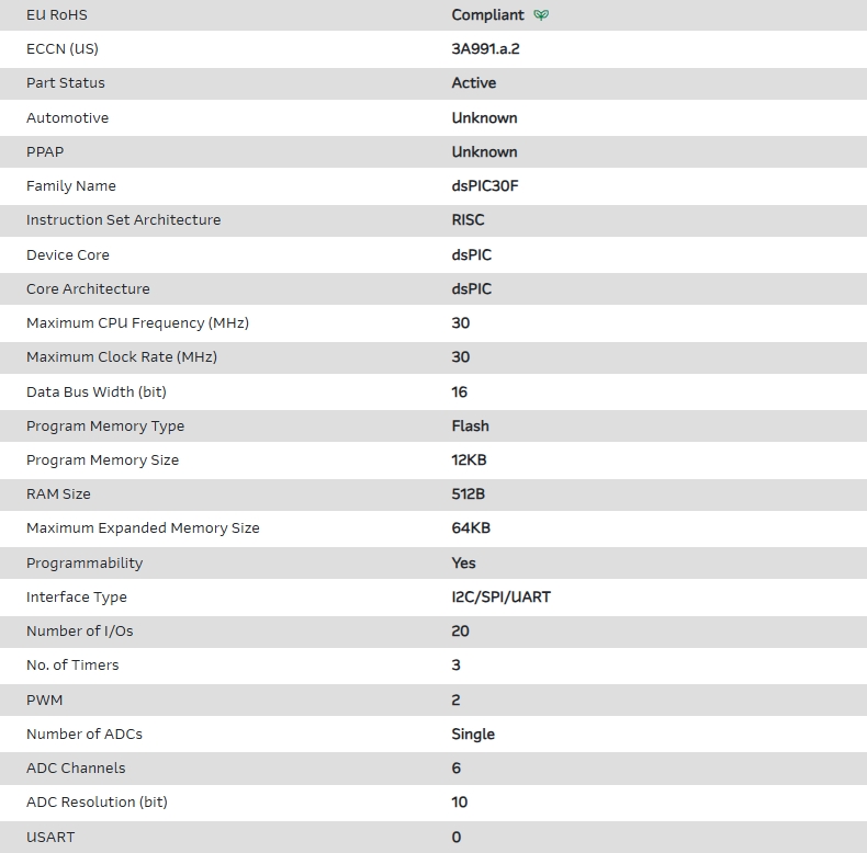 MCU 16-bit dsPIC RISC 12KB Flash 3.3V/5V 28-Pin QFN-S EP T/R