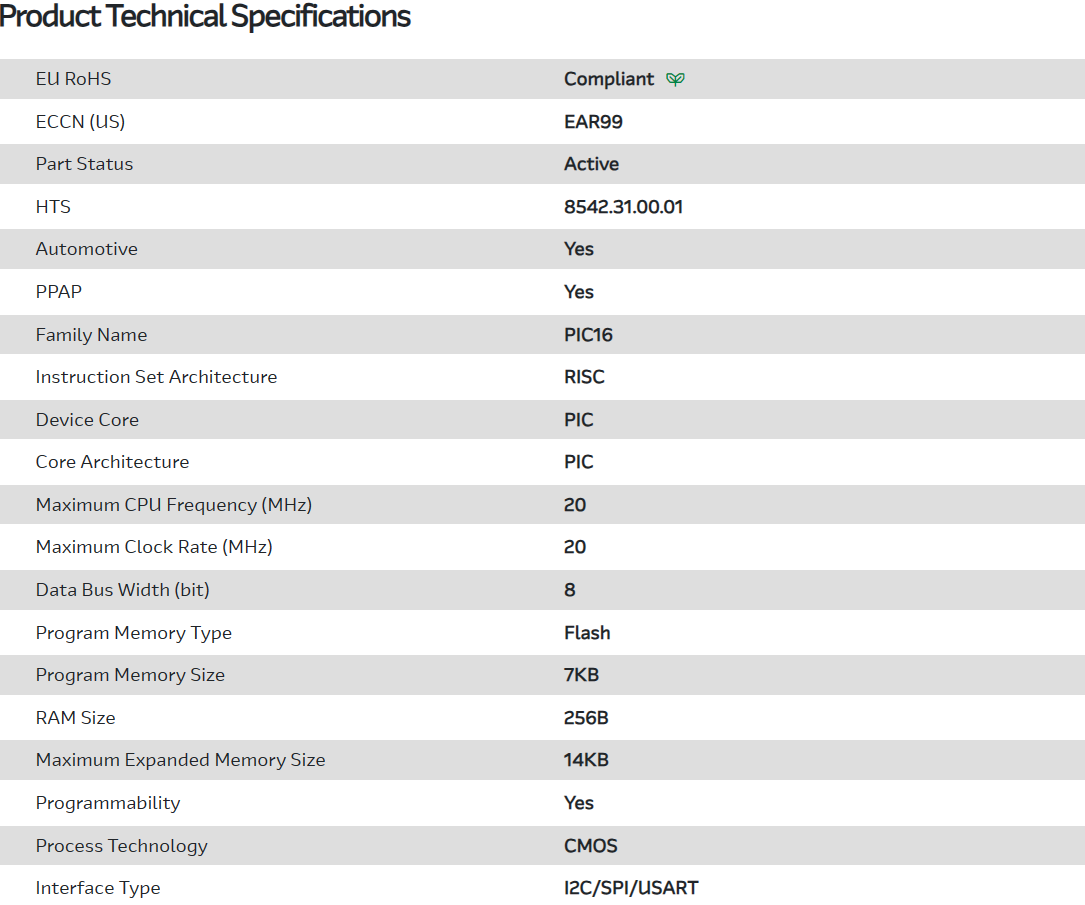 MCU 8-bit PIC RISC 7KB Flash 5V Automotive AEC-Q100 20-Pin QFN EP Tube
