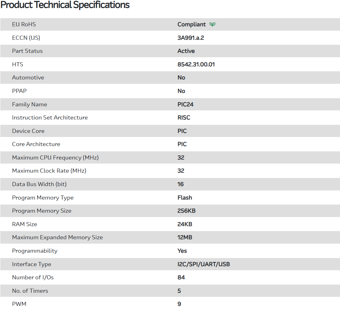 MCU 16-bit PIC RISC 256KB Flash 2.5V/3.3V 100-Pin TQFP Tray