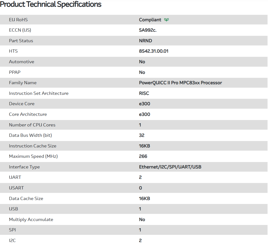 MPU PowerQUICC II Pro MPC83xx Processor RISC 32bit 0.09um 266MHz 1.8V/2.5V/3.3V 516-Pin TEBGA Tray