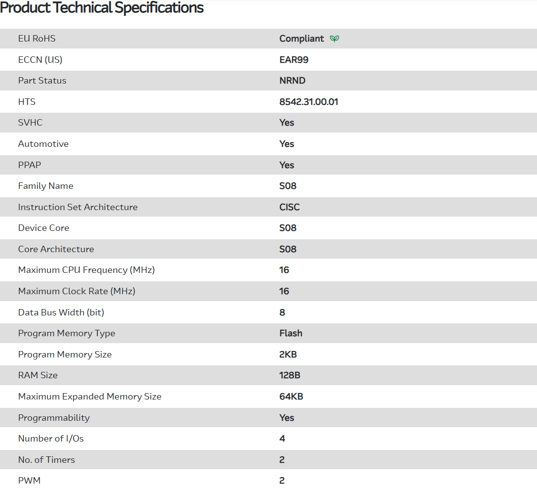 MCU 8-bit S08 CISC 2KB Flash 3.3V/5V Automotive AEC-Q100 8-Pin SOIC N Tube