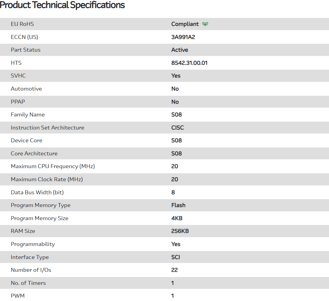 MCU 8-bit S08 CISC 4KB Flash 2.5V/3.3V 24-Pin QFN Tray