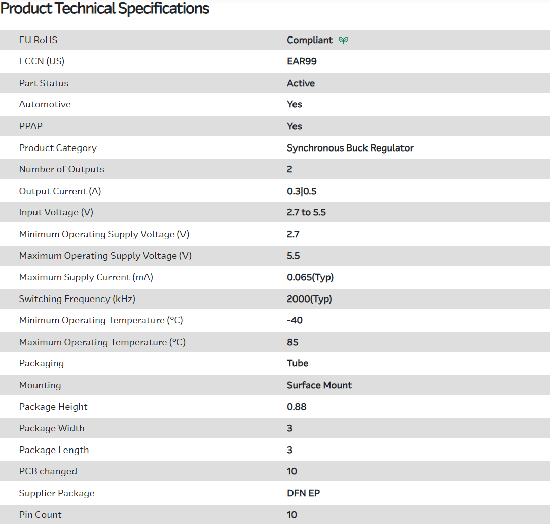 Synchronous Buck Regulator 2.7V to 5.5V Automotive AEC-Q100 10-Pin DFN EP Tube