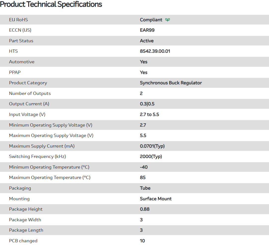 Synchronous Buck Regulator 2.7V to 5.5V Automotive AEC-Q100 10-Pin DFN EP Tube