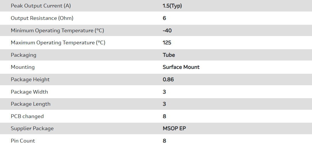 Driver 0.025V 1.5A 2-OUT Low Side Inv 8-Pin MSOP EP Tube