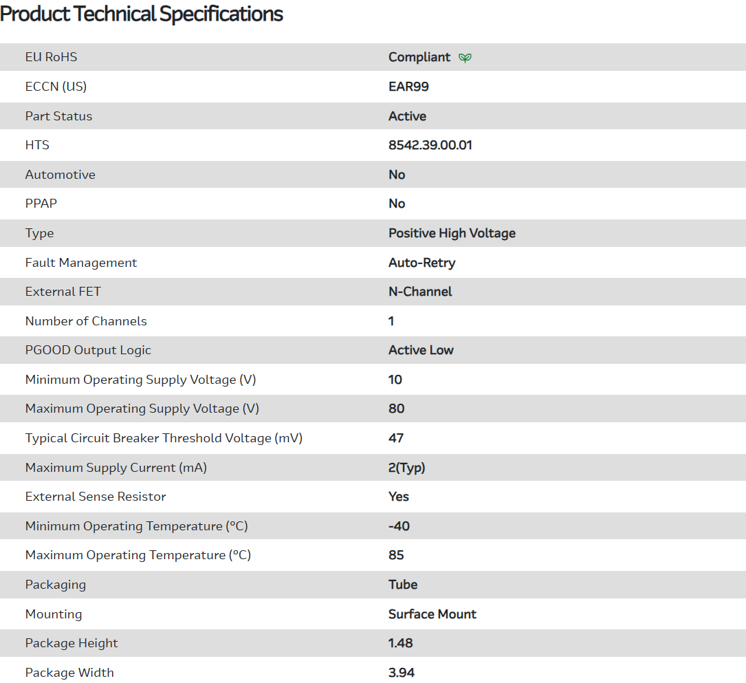 Hot Swap Controller 1-CH 80V N-Channel Positive High Voltage 8-Pin SOIC N Tube