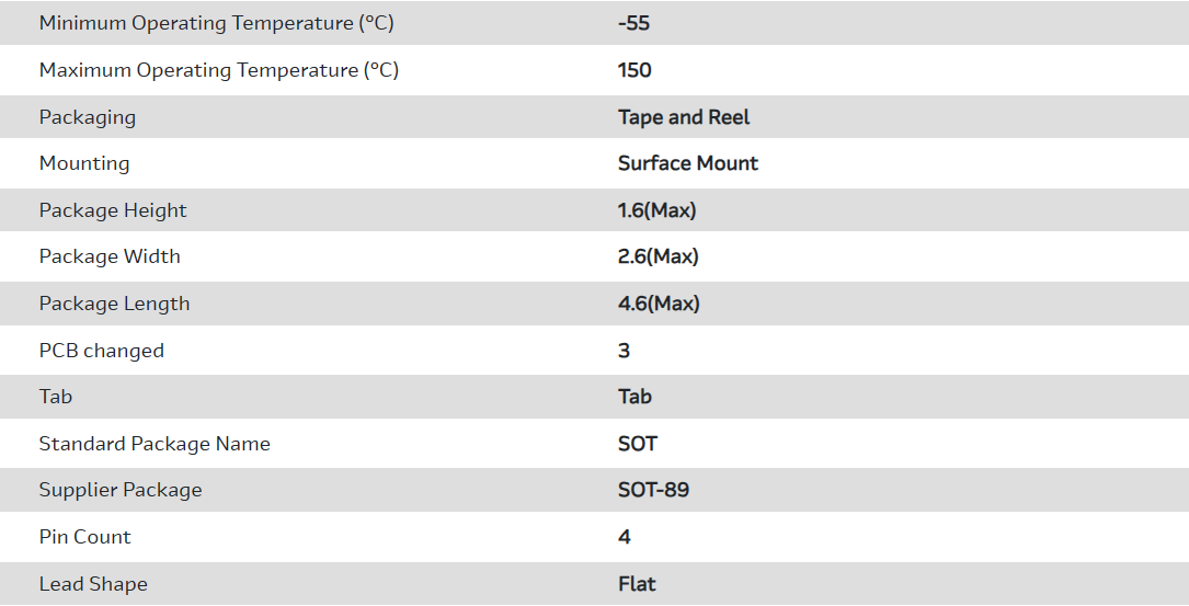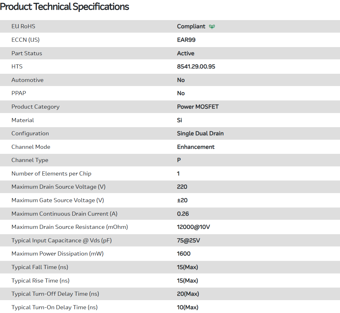 Trans MOSFET P-CH Si 220V 0.26A 4-Pin(3+Tab) SOT-89 T/R